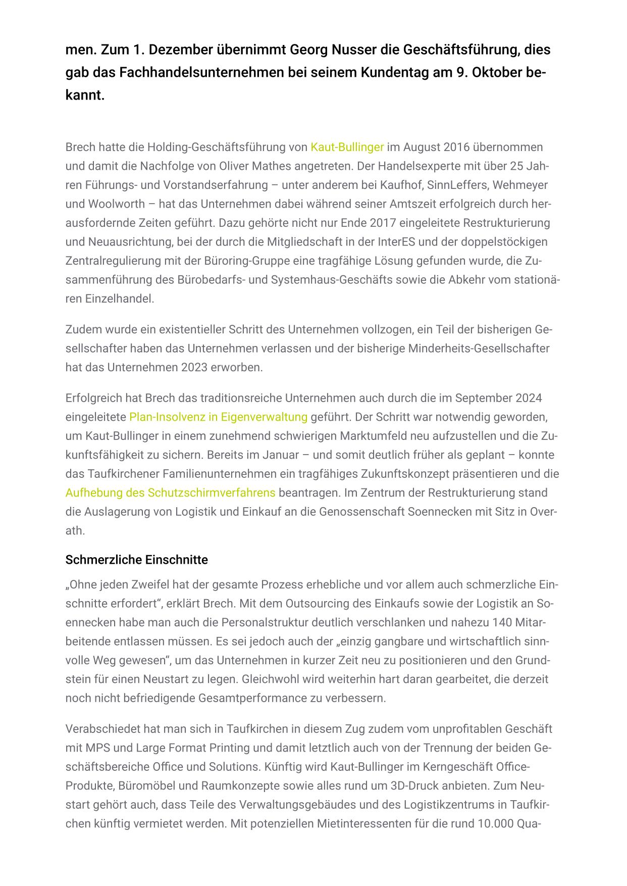 „Herr Brech hat uns in seiner Zeit als Beiratsvorsitzender tatkräftig unterstützt. Wir sind ihm für diese Zeit, seine Verlässlichkeit und seine eingebrachte Erfahrung sehr dankbar.”